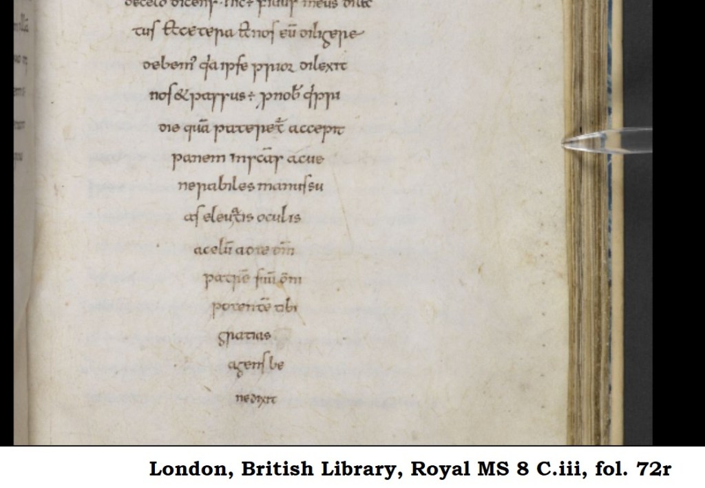 While Boniface’s triangular notations were added after the main text had been finished and, as such, represent the marks of a user or owner of the text, the original late tenth-century scribe of London, British Library, Royal MS 8 C.iii made part of his main text into the shape of a triangle: